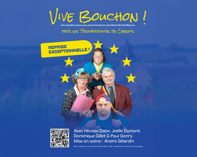 Après le succès considérable connu début d’année avec cette pièce, la Compagnie royale des Troubadours de Chenois-Latour reprend « Vive Bouchon ! », une comédie de Jean Dell et Gérald Sibleyras mise en scène par le président André Gillardin.